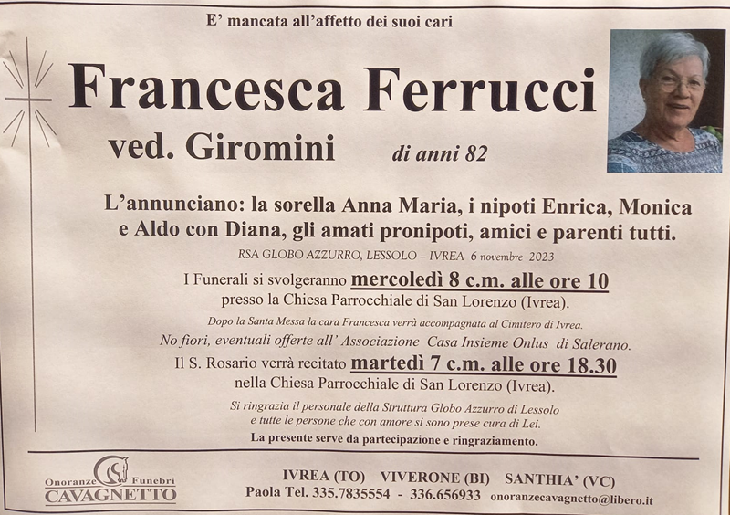Necrologi Ivrea - Canavese | Biella - Biellese | Santhià - Vercellese